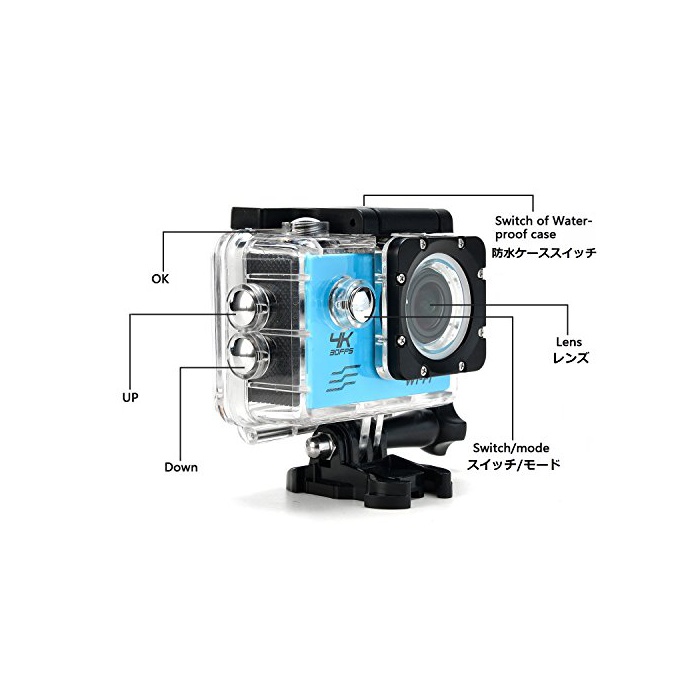 원본상품명: AGPTEK HD 4K 1080P DVスポツカメラ WiFi搭載 170度角レンズ 2.0インチLCD 水 中撮影可能(30m以) 車載DVR 防水ケス、バッテリ付 ブル