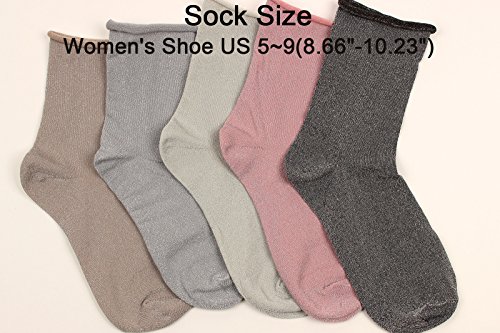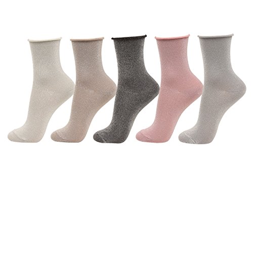 -. Binding : Apparel -. Brand : WOWFOOT -. Department : womens -. Feature : 5 Pairs of Roll Top Glitter Peal Socks / COMPOSITION : 70% Cotton + 25% Spandex 5%Polyurethan- High Quality Cotton Content Allows To Absorb Sweat & Makes Feel Comfortable / DESIGN : These Roll-Top Cotton Ankle Socks is made by soft and fine cotton and designed with trendy, comfy roll tops. Also, You can adjust roll top up pr down for your own style / SIZE : One Size Fit / Reference : Fit Womens Shoes Size : US 5-9 / 220mm~260mm / WASH : Hand Washable / Do not bleach -. IsAdultProduct : 0 -. ProductGroup : Apparel -. ProductTypeName : SOCKSHOSIERY -. Size : One Size -. Title : WOWFOOT 5Pair Women Glitter Roll Top Socks Over Ankle High Soft Cotton Girl 5 Color