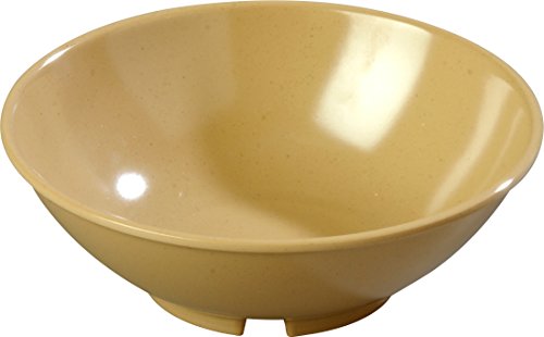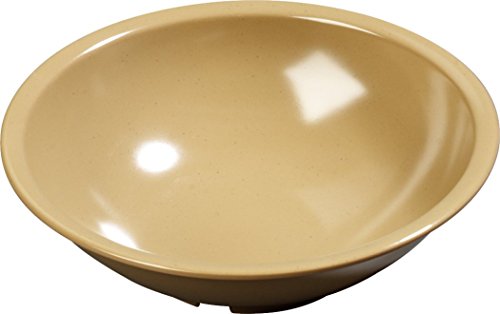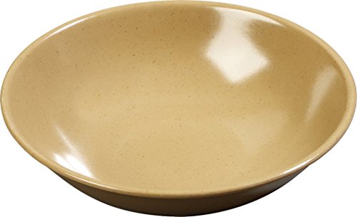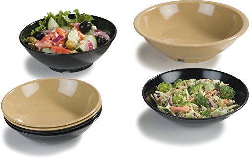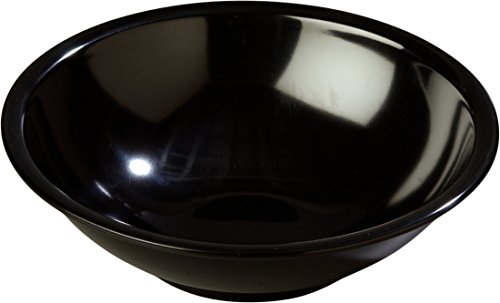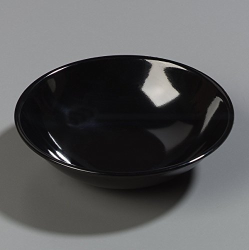 This Carlisle 500B03 black salad bowl is 2" in height, 5.43" in diameter, and has an 8-oz. capacity. It is made of melamine for durability and resistance to stains, scratches, and breaking, and it is safe for temperatures up to 212 degrees F. This salad bowl meets NSF International standards for use in food handling and processing, is dishwasher-safe, and suitable for home and commercial food service use.
