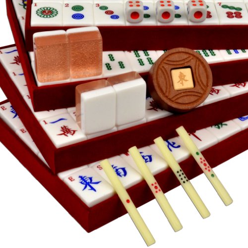 - Feature : 36 Circles, 36 Bamboos, 36 Characters, 12 Dragons, 16 Winds (N, E, S, W), 8 Flowers and Seasons, and 4 Blank Spares / Includes three dice, a spinner for determining seating placement, and a set of betting sticks / The case measures 14-7/8''L x 10-7/8''W x 2-1/4''H (37.7cm x 27.5cm x 5.6cm) / Tiles are made out of hard melamine and engraved with Chinese characters and Arabic numerals. Tiles measure 1-3/8''H x 1''L x 3/4''W (34mm x 26mm x 19mm) / PLEASE NOTE: This is a traditional Chinese mahjong set designed for Chinese mahjong rules. It does not contain joker tiles or racks| If you are buying this set as a gift and are unsure whether the recipient plays American or Chinese style mahjong, we recommend purchasing an American set. American sets contain all the tiles for both versions of play.