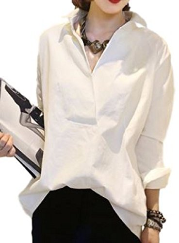 -. Feature : 深めのvが、胸元をスッキリとキレイメに演出してくれます。全体的に大きめ、ゆったりしたロングシルエットで体型カバーしてくれます。 / バックボタンのデザインがオシャレ。襟付き長袖でカジュアル。フォーマルでも、仕事でも、普段使いのチュニックにも、いろんなシーンで活躍してくれます。 / 大きいサイズの方にも。 / 素材 綿ポリエステル サイズ M,L,XL / M : 着丈 69cm バスト 108cm 袖丈 36cm L: 着丈 70cm バスト 110cm 袖丈 37cm XL : 着丈 71cm バスト 112cm 袖丈 38cm