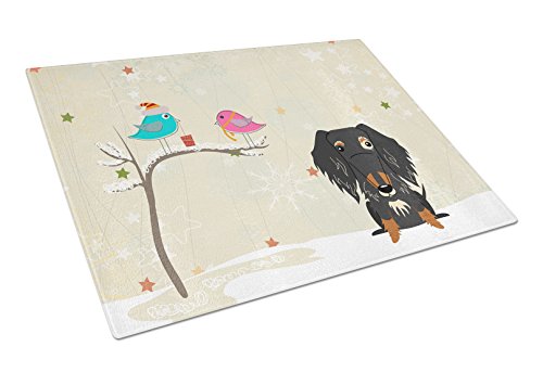 Caroline's Treasures BB2600LCB Christmas Presents Between Friends Wire Haired Dachshund Dapple Glass Cutting Board, Large, Multicolor