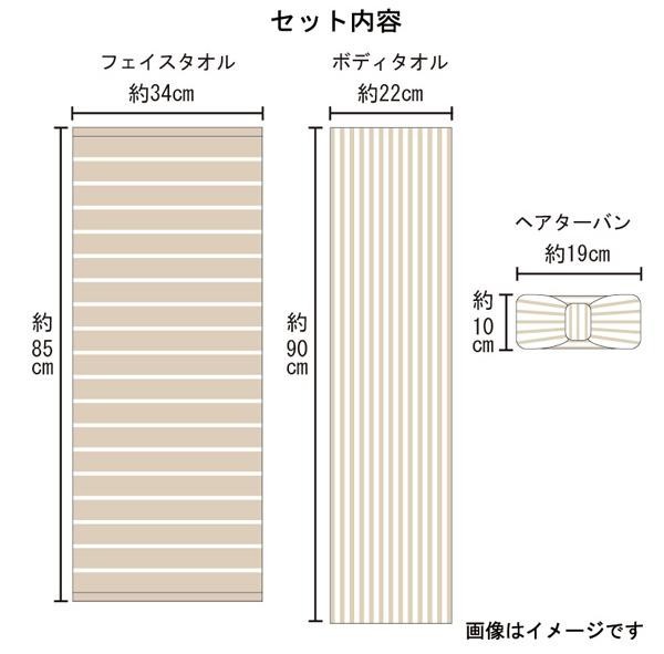 | セット内容 | フェイスタオル×1、ヘアターバン×1、ボディタオル×1 |