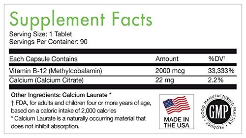 ☆CLEANEST B-12 AVAILABLE: Just pure B-12, Calcium Citrate, and Calcium Laurate dissolves easily under the tongue!