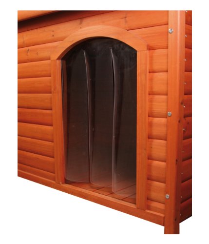 Studio : Trixie Pet Products Publisher : Trixie Pet Products Binding : Misc. Product Description Trixie's plastic door for our peaked roof dog houses will help keep your canine companion warm and dry. It is compatible with our small size dog house model number 39530, as well as many other standard size brands. The heavy duty plastic flaps are vertical and transparent, making it easy for your pet to enter and exit while keeping out the harsh elements. Simply screw the door into the top of the interior door frame for quick and easy installation. Screws included. Color clear plastic. One year warranty. Dimensions 9 by 14-Inch. 0
