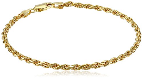 -. Title : Gold Plated Sterling Silver 060-Gauge Diamond-Cut Rope Chain Link Bracelet, 8"