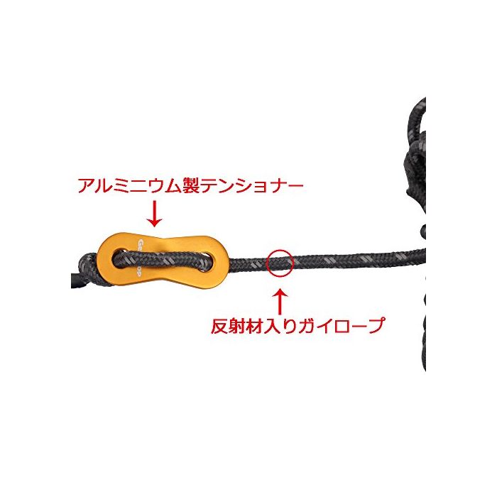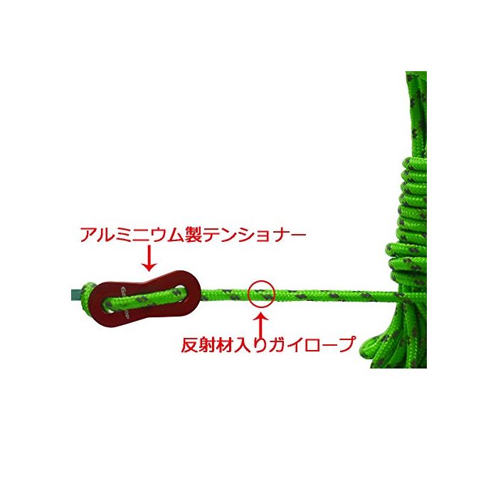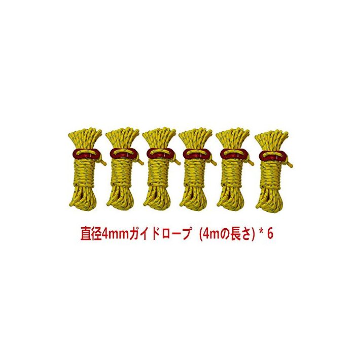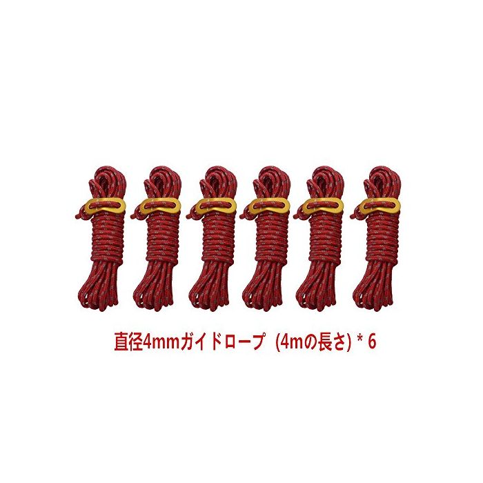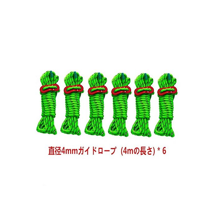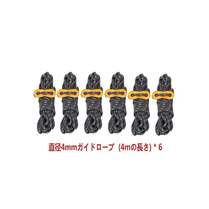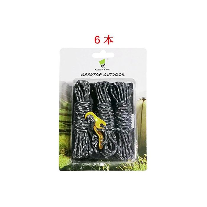원본상품명: GEERTOP テント ロ?プ 反射材入りパラコ?ド ガイライン ガイドロ?プ アルミニウムテンショナ?付き 4mm * 4m 6本
