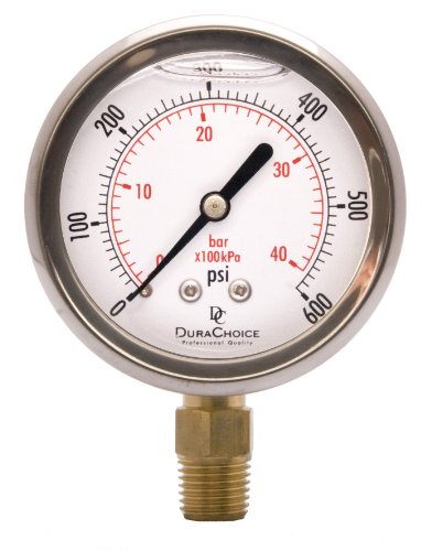 2-1/2" Oil Filled Pressure Gauge - Stainless Steel Case, Brass, 1/4" NPT, Lower Mount Connection 0-600PSI