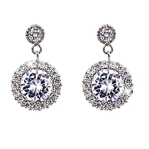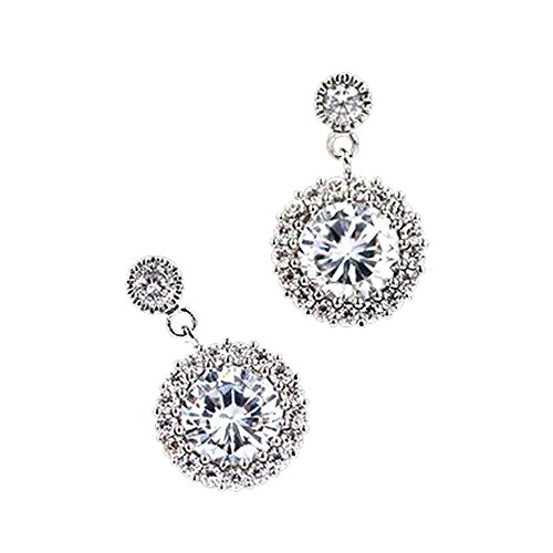 LuckySHD S925 Silver Crystal Rhinestone Circle Round Shape Stud Earrings-White Gold