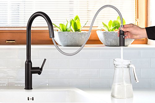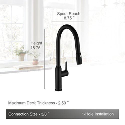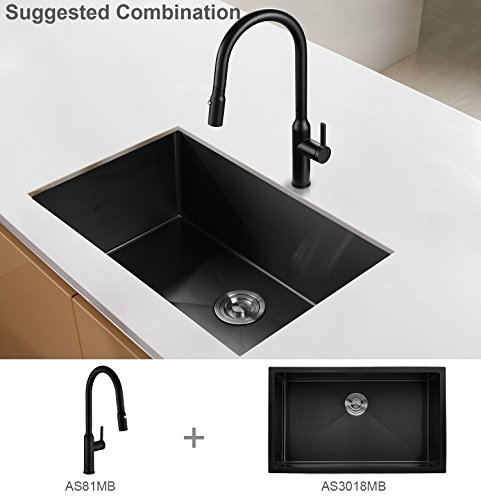 AguaStella Faucet AS81MB Matte Black Kitchen Faucet Single Handle Deck Mount Pull Down Sprayer High Arc Kitchen Sink Faucet
