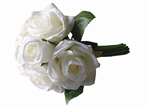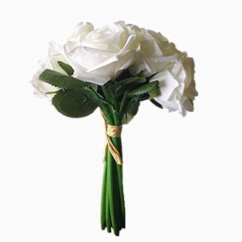Helen Ou@ 1 Bunch Artificial Bridal Bouquet Great Decoration Silk Flowers Romantic Rose White
