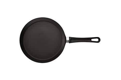 Famous Scandinavian design, traditional, sold craftsmanship and the latest advances in technology combine to set Scanpan Classic Cookware apart. Scanpan Classic is hand cast aluminum under 200 tons of pressure. The optimum thickness of the pan base prevents warping and keeps the pan base perfectly flat, especially important when used with glass top or ceramic ranges. The patented nonstick surface is created by firing a ceramic-titanium particles into the pan and a specially formulated nonstick compound is embedded in the ceramic-titanium surface. The pan thickness and unique ceramic-titanium surface allows for browning, searing and deglazing. Scanpan Classic can be used with high heat for stir frying and is oven safe to 500-degrees. Glass covers let you see what is cooking. Scanpan Classic is safe to use with metal utensils and comes with a Lifetime Warranty. Made in Denmark. Crepe Pan 10-inch diameterFeature