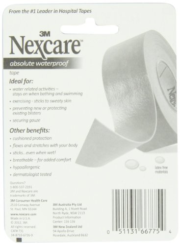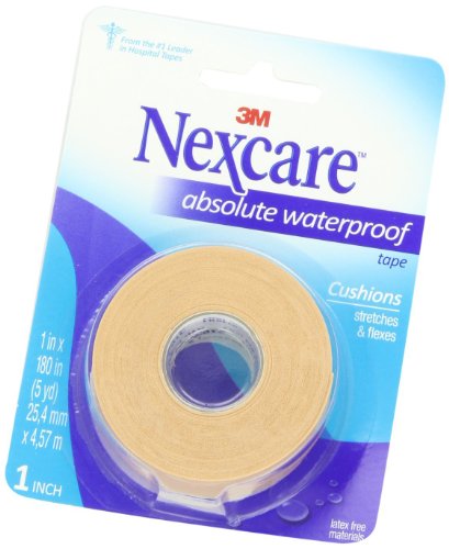 Nexcare Absolute Waterproof First Aid Tape flexes and stretches with your body, cushions as it protects, and sticks to damp skin. These features make Nexcare Absolute Waterproof First Aid Tape ideal for active lifestyles and exercising, and for protecting wounds during water related activities like bathing and swimming. Nexcare Absolute Waterproof First Aid Tape is also great for helping to prevent blisters, and for protecting blisters once they've formed. These first aid tapes have been dermatologist tested and are part of a complete line of 3M medical tapes that are also hypoallergenic and made from latex free materials.