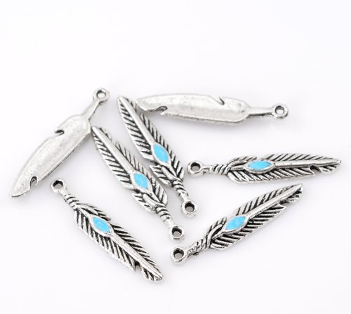 28pcs Dreamcatcher Charms + 95pcs Feather w/ Blue Enamel, Native American Inspired DIY Jewelry Lot