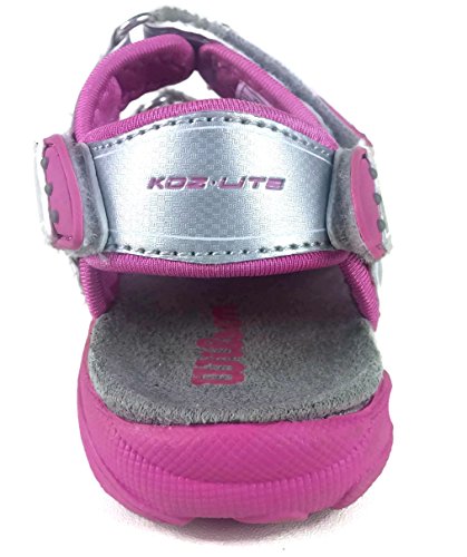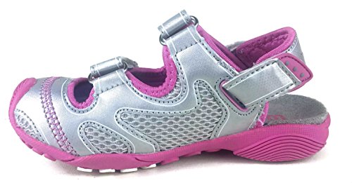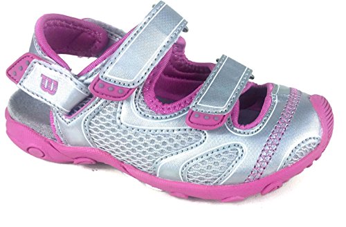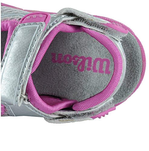 Cute and attractive, little girls' Wilson Solar sandals have closed toe design, 4 hook-and-loop closures for an easy on/off and a secure fit and stylish signature printed insole.