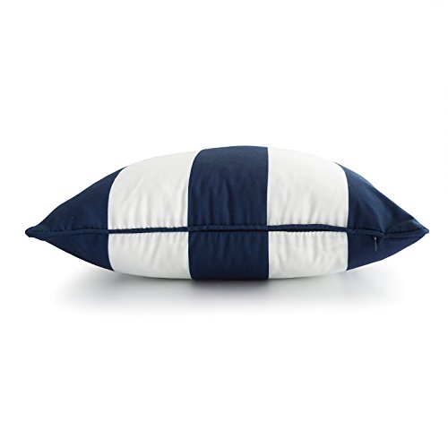 Accent your home with Hofdeco Nautical Navy Blue Stripes pillow covers and make yourself the envy of the neighborhood. Made from OUTDOOR WATER RESISTANT Canvas fabric, this decorative pillow cover is comfortable, and crafted for durability with fine detail which provides beautiful color definition while also being the perfect complement to your couch!