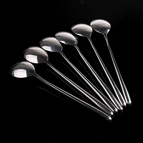 Korean Stainless Steel Rice Soup Iced Tea Spoon Coffee Spoon Cold Drink Spoon Fruit Juice Long Ice Scoop Long handle Great Circle 3Pcs
