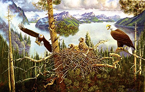 -. Feature : Ages: 10 Years to Adult / SunsOut Puzzle Company has over 1000 designs to choose from - puzzles for all ages, from 48pcs to 6000pcs! / This lovely wildlife scene features an eagles nest with fresh hatchlings! Mom is swooping for prey while pop guards the nest. / 100% of SunsOut products are made in the USA on recycled board and Eco-Friendly, Soy-based inks. / Artist Derk Hansen is renowned for his wildlife, western, landscape and seascape portraits! Completed dimensions of this 550-piece puzzle are 15" x 24".
