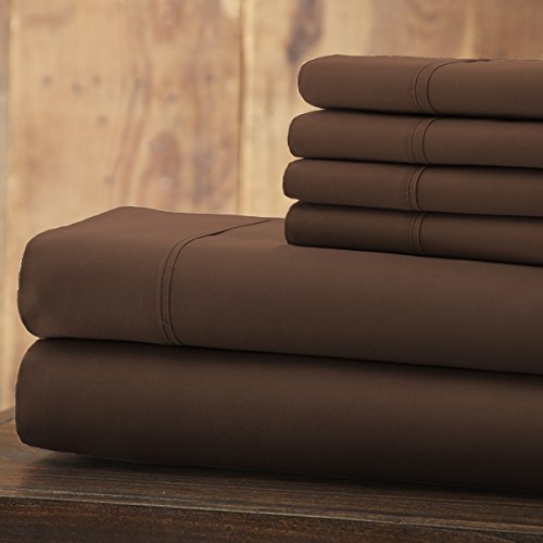Spirit Linen 6 Piece Everyday Essentials 1800 Series Sheet Set, King, Chocolate