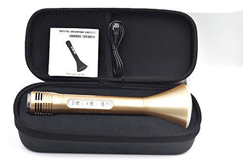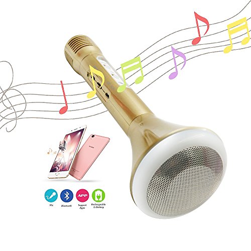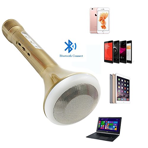 Liibot Rechargeable Handheld Microphone, Portable Wireless Karaoke Mic With Bluetooth Speakers and TF Card Plays Multiple Function KTV Machine for Smartphone, Tablet and PC-Gold