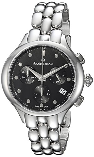 Claude Bernard Women's 'Code Chronograph' Swiss Quartz Stainless Steel and Leather Dress Watch, Color:Black (Model: 10232 3M NIN)