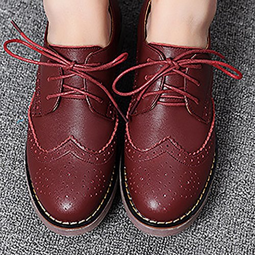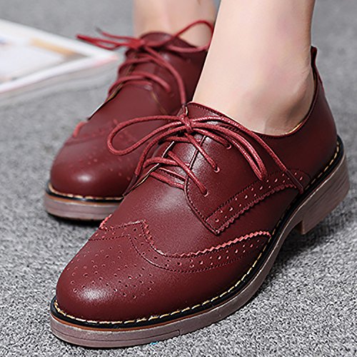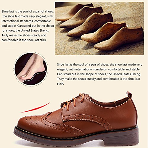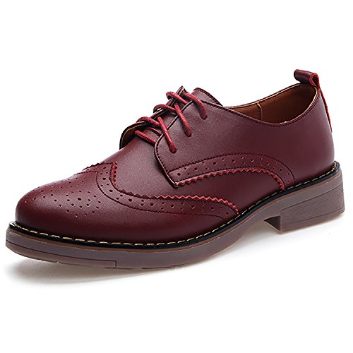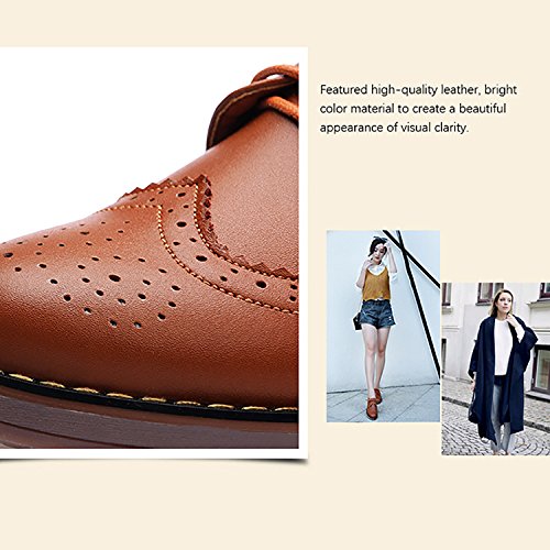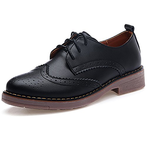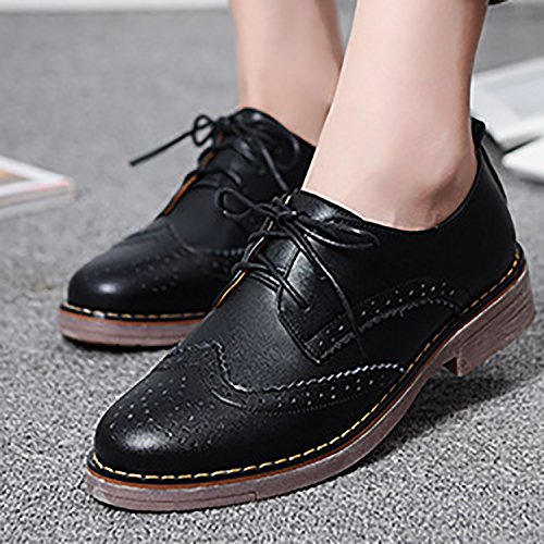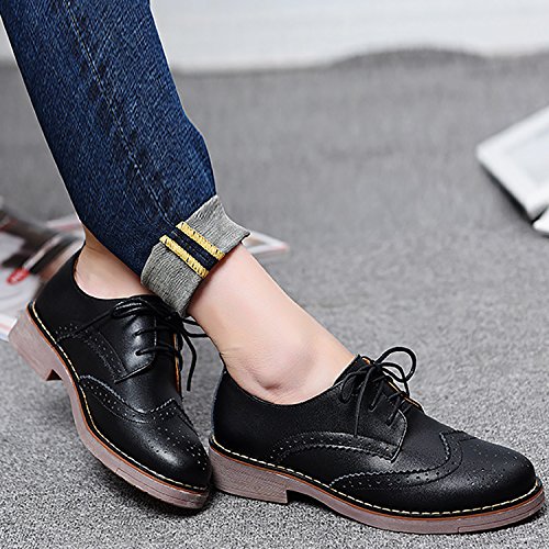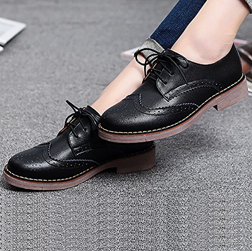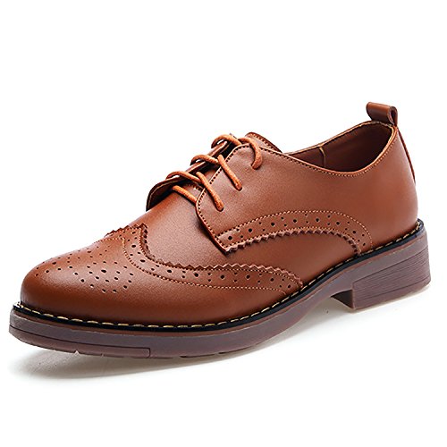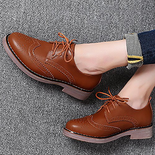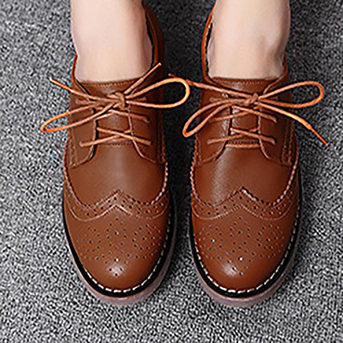 Odema Womens Classic Casual Round Toe Brogues Perforated Lace Up Oxfords Wingtip Leather Flat D...