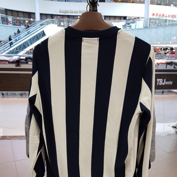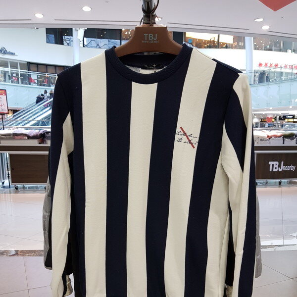 공용 세로 스티라이프 맨투맨 청바지랑 코디하기 좋아요