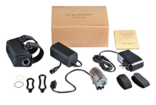 - Feature : Primary Light: Extremely bright CREE XM-L2 T6 LED bulb / Secondary Light: Twelve (12) additional micro LEDs surrounding the primary LED can be used in a constant beam mode (very low power draw) or blinking mode ( for safety). / Large Battery Capacity: Light weight 33 WH Li-ion battery pack is included. / Long Run Time: Light for up to 15 hours depending on which brightness level you choose. (4 hr at High, 8 hr at Medium and 15 Hr at Low). / Weather Resistant: Tough, water-resistance, aircraft-grade aluminum housing is designed for efficient heat dissipation (longer battery life).