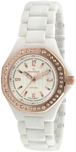 Peugeot Women's PS4896WR Swiss Ceramic Swarovski Crystal White Dial Watch