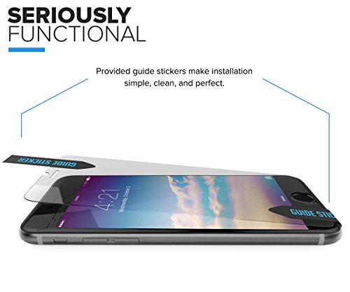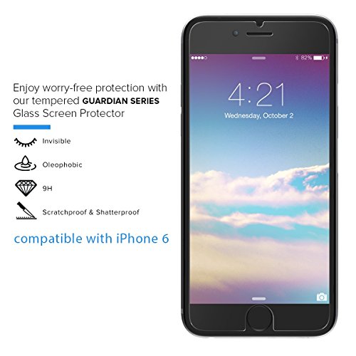 - Feature : Enjoy unmatched protection for thickness with our tempered Guardian Series Glass Screen Protector for the iPhone 6 / Our screen protector is made from the best glass on the market with 9H+ hardness and shock-dampening layering / Everything-proof: our anti-shatter film finishing makes the screen protector oleophobic (anti-fingerprint), scratch resistant, and shatterproof / Seamless phone integration: our ultra clear glass has 99.9% touchscreen sensitivity, rounded edges, and bubble-free installation / Package contents: screen protector, squeegee, microfiber cloth, dust removal stickers. NOTE: The iPhone 6 was designed with rounded edges. Per this, this screen protector does not protect the full screen, but only the flat part of the glass.