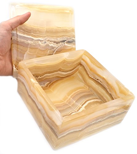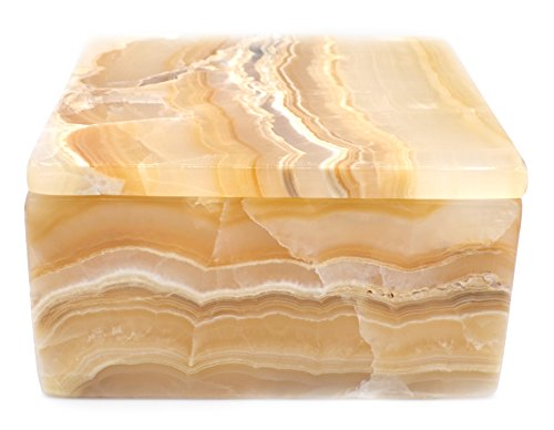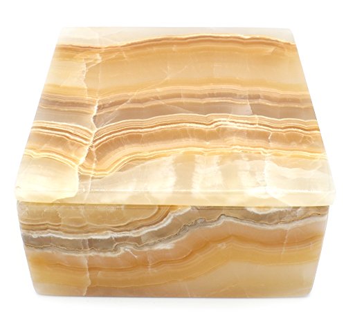 Glowing Amber Stone Square Keepsake Box, 6" wide (4.9lbs), Carved from Real North American Onyx Aragonite - The Artisan Mined Series by hBAR