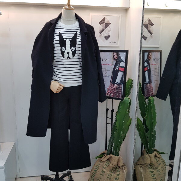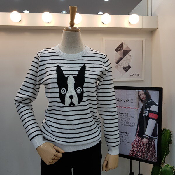블랙앤화이트 시크한느낌에 귀여운강아지포인트로 다양히 연출 가능한 니트