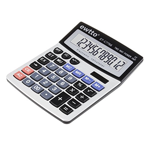 EWTTO 12 Digital Dual Power Large Display Electronic Calculator, Standard Function Desktop Business Calculator with LCD Display Screen