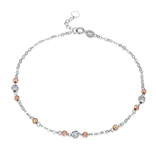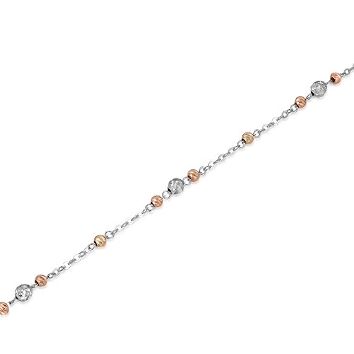 -. Title : 14K Tri-Color Gold Rose, Yellow And White Small Beads Anchor Chain Anklet (9')