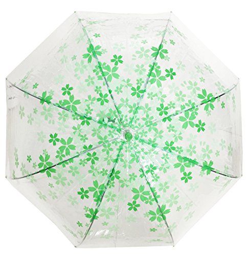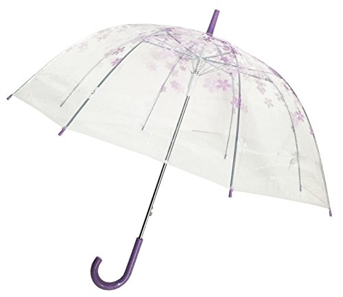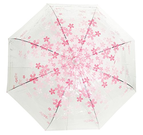 Product DescriptionThis umbrella is clear bubble. It has cherry blossom printed on the umbrella. This umbrella curves at the shoulder, so it measures 34" wide from the bottom.0