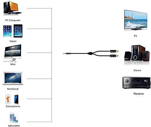 [2Pack] RCA Cable, iXCC 6 Feet Dual Shielded Gold-Plated 3.5mm Male to 2RCA Male Stereo Audio Y Cable