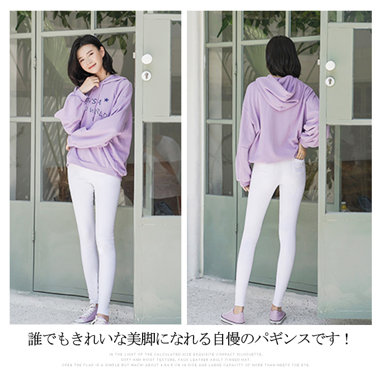 | 激伸び!!今旬のストレッチ美脚スキニーパンツ!伸縮性のあるストレッチ素材で体にフィットして、楽チンな履き心地!屈んだときも下着が見えにくいジャストウエスト丈はきちんと感もキープ。さらにベーシックからトレンドカラー全4色展開のが嬉しい。足首までの絶妙丈で、足元もたつかずスッキリと美脚に見せてくれます。誰でもきれいな美脚になれる自慢のパギンスです! | |