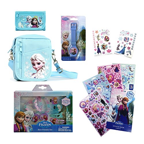-. Brand : Disney Frozen -. Department : girls -. Feature : 1 - Disney Frozen Shoulder Bag and Wallet / 1 - Best Friends Jewelry Set (2-Bracelets, 2-Rings, 2-Snap clips) / 1 - Anna and Elsa Frozen Digital Watch / 1 - 33 Frozen Temporary Tattoo pack (2 Sheets) / 1 - 300 Frozen Stickers (4 Sheets) -. ProductGroup : Apparel -. ProductTypeName : LAGE -. Size : One Size -. Title : Frozen Shoulder Bag with Watch and Jewelry Accessory Set