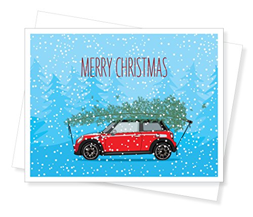 Mini Cooper Holiday Christmas Cards, Set of 10 Greeting Cards