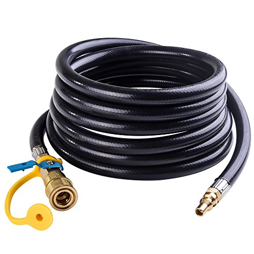 SHINESTAR 12feet RV Quick Connect Propane Hose Extension -1/4” Safety Shutoff Valve & Male Full Flow Plug for Low Pressure System