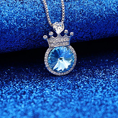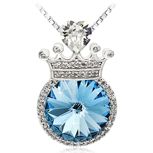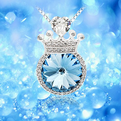 -. Title : JOLICE Pendant Necklace Swarovski Rounded Crystal White Heart Crystal Crown 18'' (Sapphire)