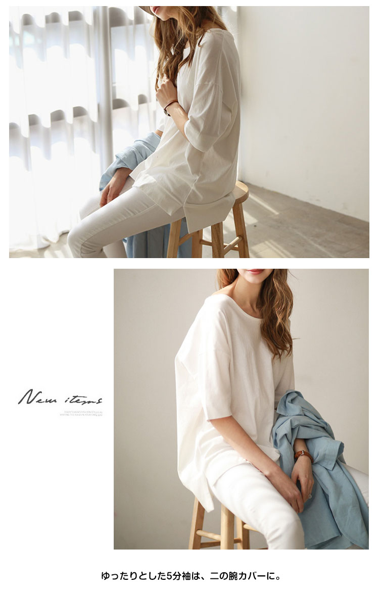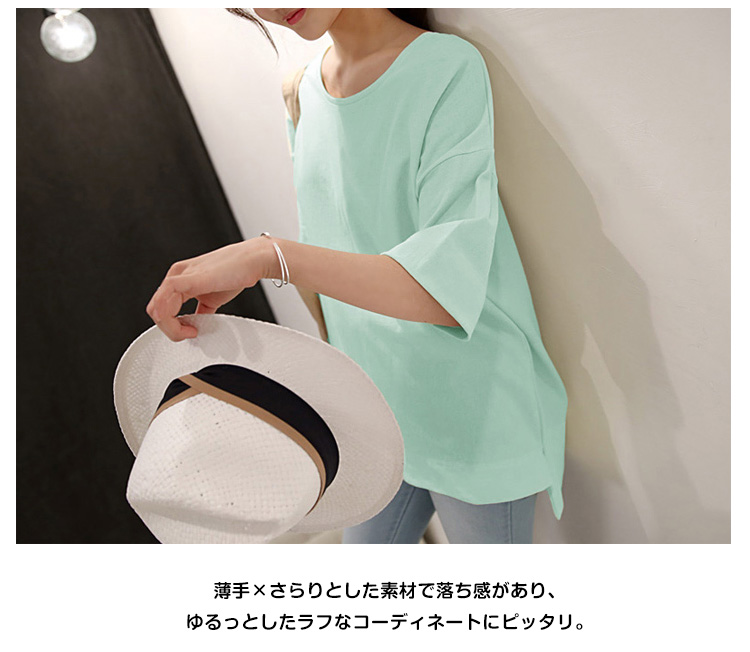 | 体のラインを拾わないビッグシルエットのゆるtシャツ。ゆったりとした5分袖は、二の腕カバーに。程良い伸縮性があり、滑らかな肌触りの素材を使用しカジュアル感をプラス。薄手×さらりとした素材で落ち感があり、ゆるっとしたラフなコーディネートにピッタリ。 装飾を省いたシンプルなデザインなので、着回し力が高く気軽にコーデに取り入れられるのが魅力。 | |