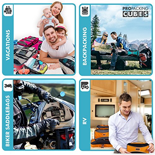 DEPENDABLE DURABILITY - Pro Packing Cubes are built to last with high-quality materials and manufacturing. Each cube in this 5-piece packing cubes value set is backed by a 100% Lifetime MONEYBACK GUARANTEE - meaning that you get more for your money - with less risk! Pro Packing Cubes deliver quality, convenience, and incredible customer service in one neat cube!