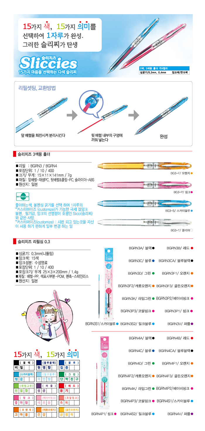 * 소비자가 원하는 바디와 색상을 자유롭게 선택하여 하나의 펜을 만들어 사용