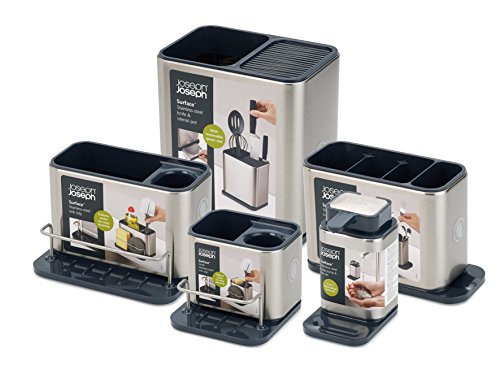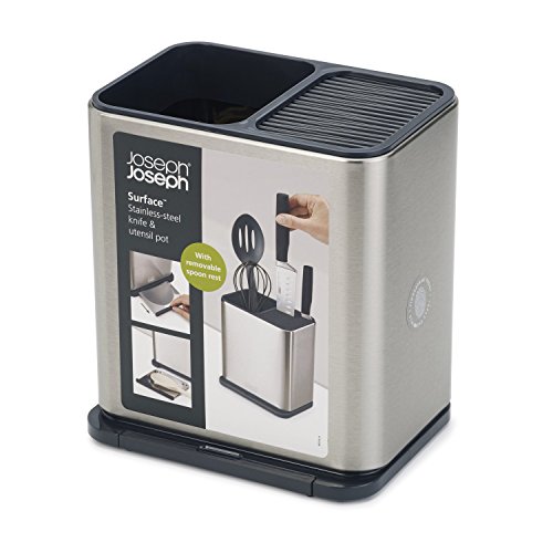 Joseph Joseph 85136 Surface Kitchen Tool and Knife Holder Stainless Steel Cutlery Utensils Organizer Spoon Rest, Silver