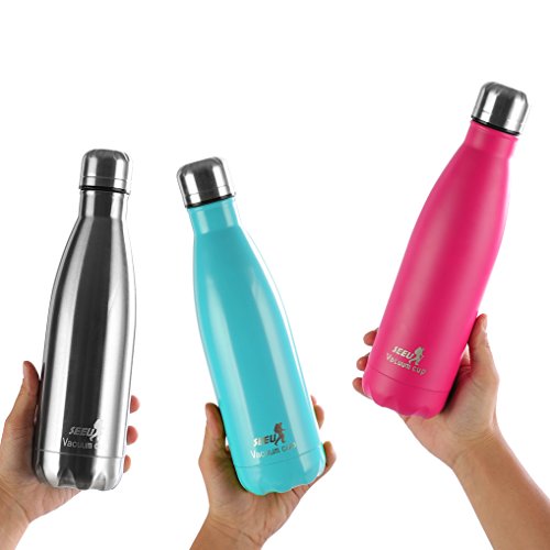 Best Deal! Double Wall Vacuum Insulated Stainless Steel Water Bottle, SEEU 17oz/34oz Sports Cola Shape Portable Water Bottle Leak / Sweat Proof Keeps Your Drink Hot & Cold