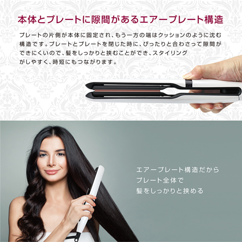●エアープレート構造で髪を均等にしっかり挟める セラミックコーティングだからダメージレスな仕上がりに