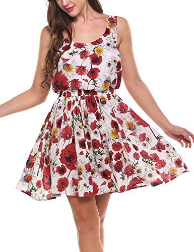 -. Title : Zeagooレディースカジュアルフィットとフレア花柄ノースリーブパーティーカクテルスケータードレス