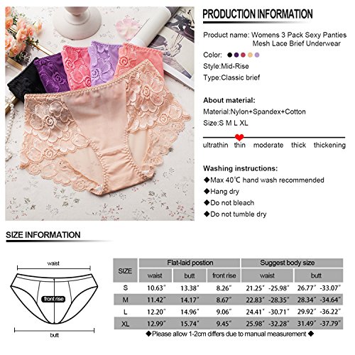 -. Title : Amilia Womens 3 Pack Sexy Panties Hot Butt See Through Mesh Lace Brief Underwear