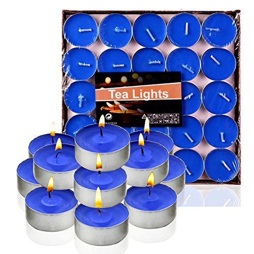 Tea lights Candles,G2PLAY Set of 50 Scented candle for Home, Patio, Gardens, Outdoors, Weddings, Parties (Blue)